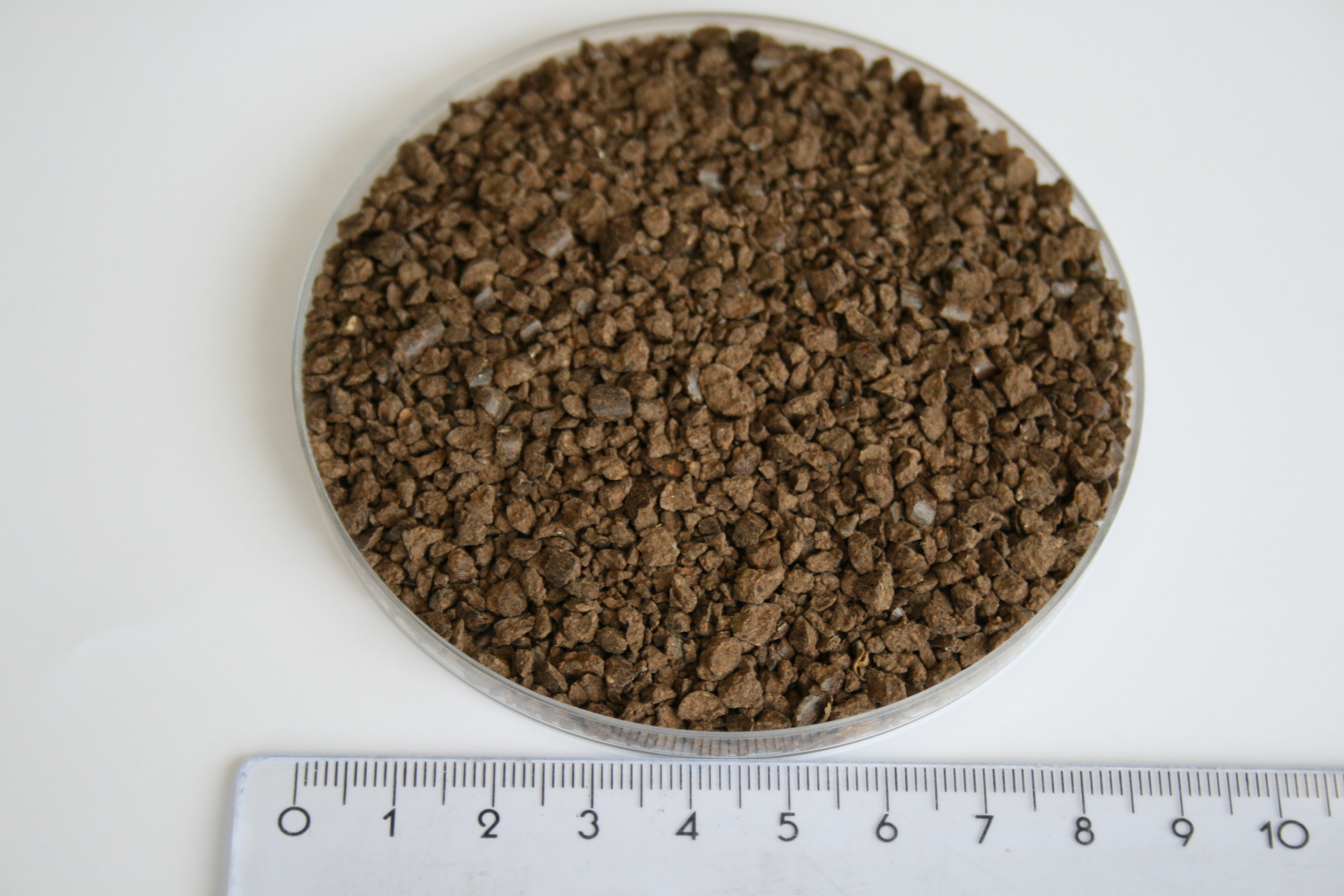 Karisol® Verrijkt gemengd organisch bodemverbeterend middel rijk aan organische stof (73 %). Karisol® bestaat uitsluitend uit plantaardige resten, nl. oliekoeken van de boternoot, cacaodoppen en Vlaco-gecertificeerde groencompost. Het is algemeen geweten dat enkel plantaardige resten leiden tot stabiele humus; dierlijke resten stellen wel voedingsstoffen vrij, maar geven na afbraak weinig of geen humus. Karisol® is een uniek product omdat het bijzonder rijk is aan organische stof en aan droge stof. Dat maakt Karisol® bijzonder geschikt om het humusgehalte van een bodem langdurig te verhogen. En dat is precies wat we beogen met het product: geen twee-in-één (voeding én humusvorming), maar resoluut naar humusvorming! 85 %Droge stof 73 %Organische stof 2,5 %N totaal 2,5 % organische N 0,7 %Fosforzuuranhydride (P2O5) totaal 2,4 %Kaliumoxide (K2O) totaal